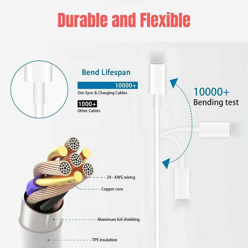 Cable Material: TPE flexible cord with 100% copper core
