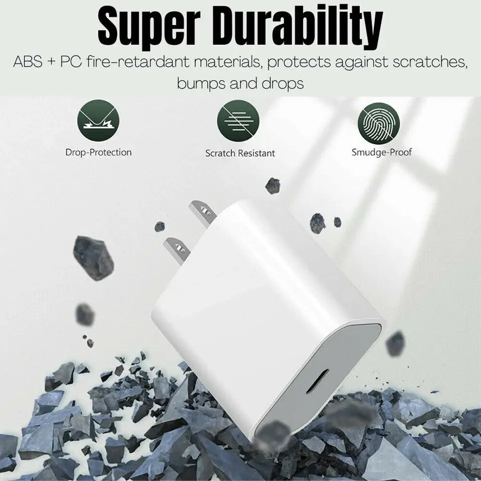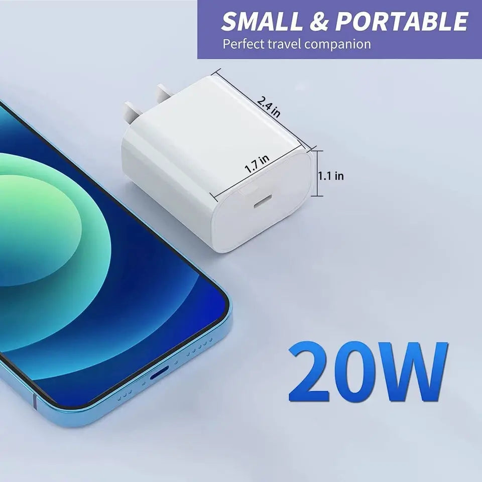 Experience up to 3× faster charging with this 20W USB-C Power Delivery (PD) charger compared to standard 5W chargers.