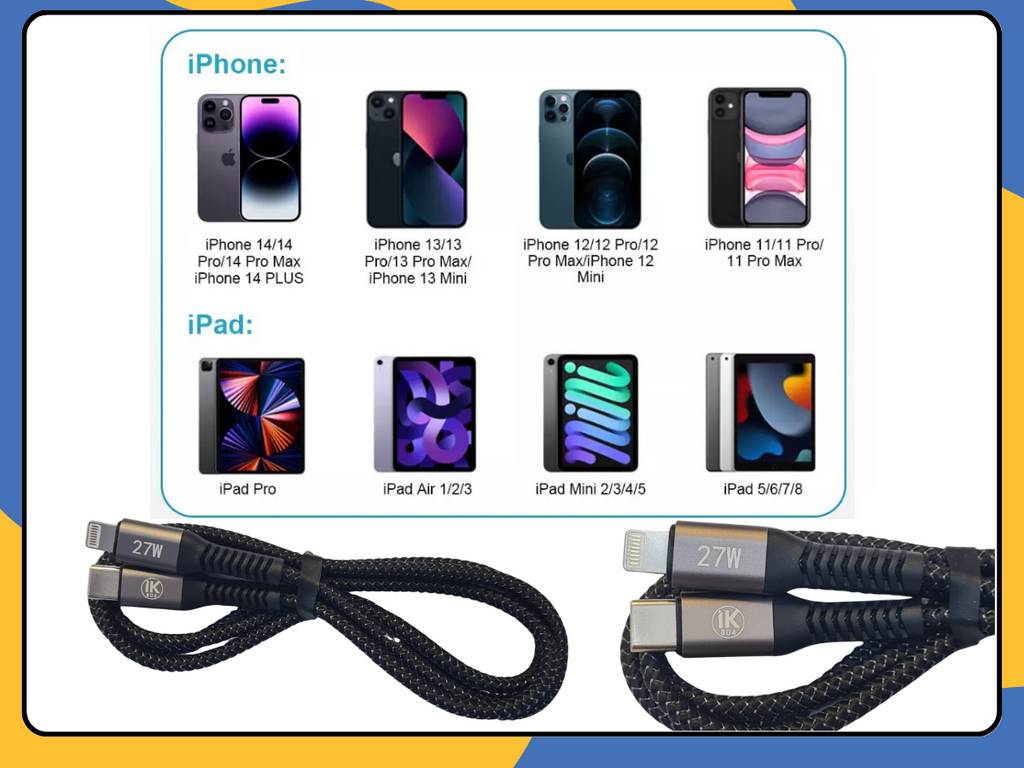Get the speed, strength & style you deserve with this premium-quality USB cable – perfect for all your Apple devices. Built with durable braided nylon, this cable offers 27W fast charging, maximum protection, and long-lasting performance!