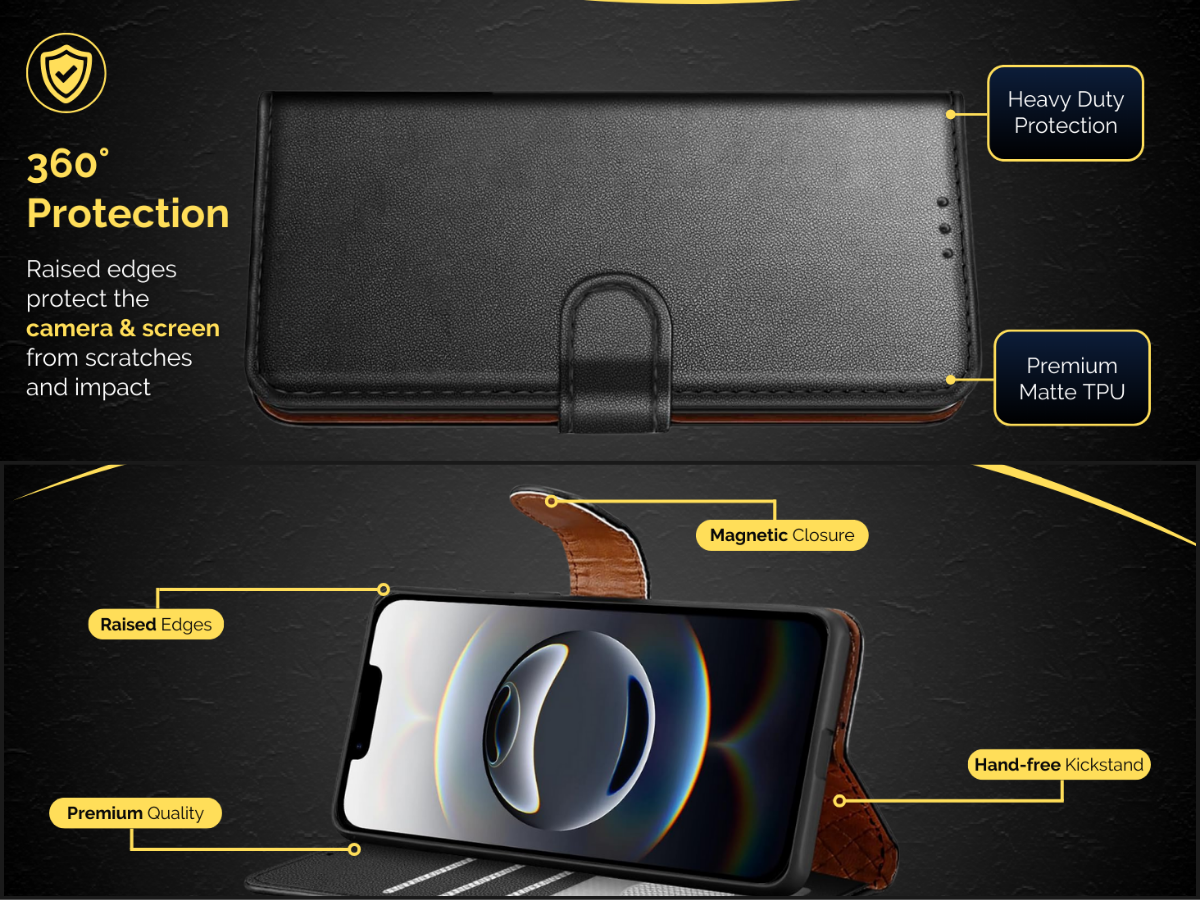 Upgrade your phone’s protection with this Premium Leather Wallet Case, designed for durability, style, and convenience. Featuring a Magnetic Flip Cover, this case ensures 360° protection against scratches, drops, and daily wear while offering a sleek and professional look.