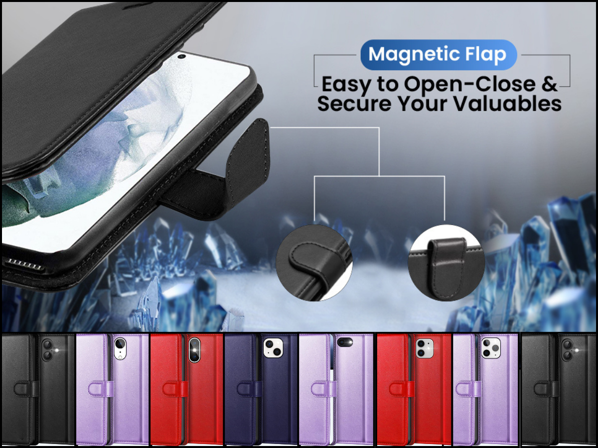 ✔ Magnetic Flip Closure – Securely keeps your phone covered