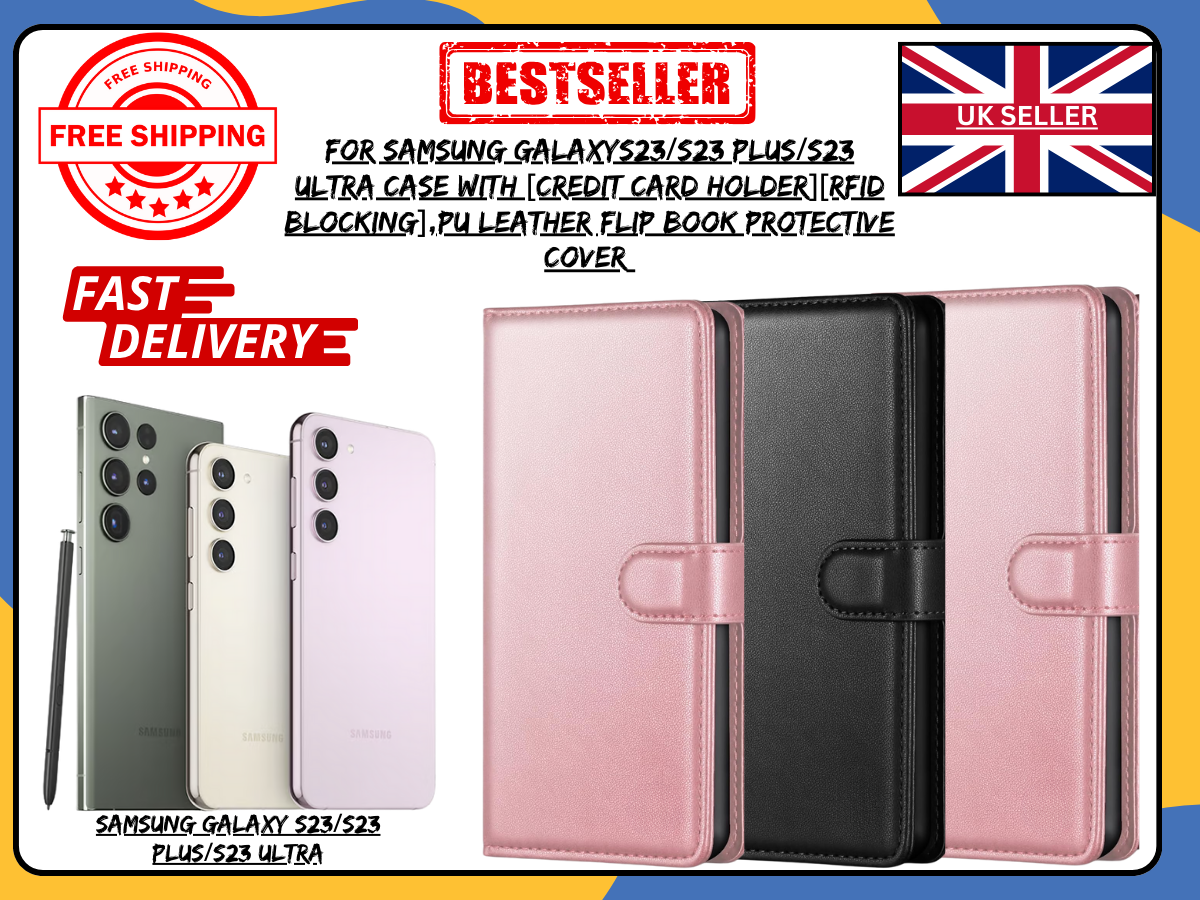PU Leather Wallet Case for Samsung Galaxy S23/S23+/S23/S23 FE Ultra - RFID Blocking Flip Stand Phone Cover - UK Seller
